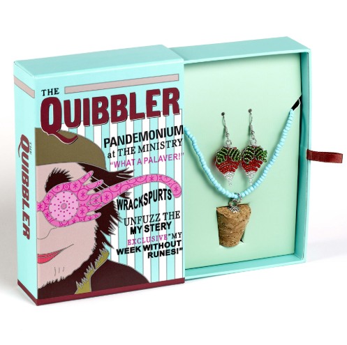 Make a statement with this gift box inspired by Luna Lovegood™ and her favorite magazine, The Quibbler . This enchanting box includes a beaded necklace adorned with a cork—a nod to Luna's famous accessories—as well as a pair of iconic radish earrings.
