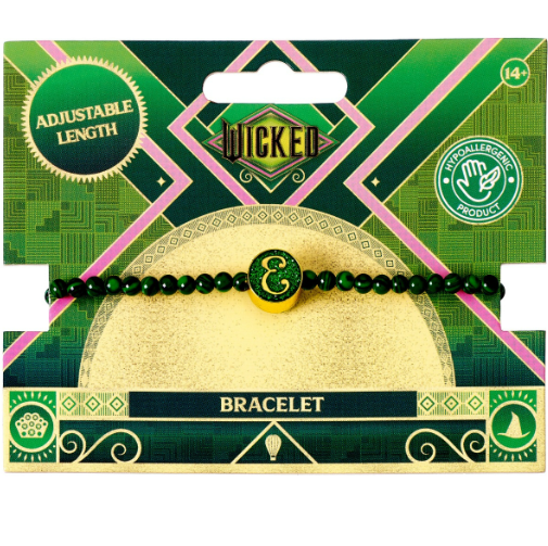 Embrace your uniqueness with this friendship bracelet inspired by Elphaba™, the powerful Witch of the West in Wicked™. Featuring green malachite beads, a stone associated with transformation and inner strength, this piece perfectly captures Elphaba™'s rebellious and authentic spirit.