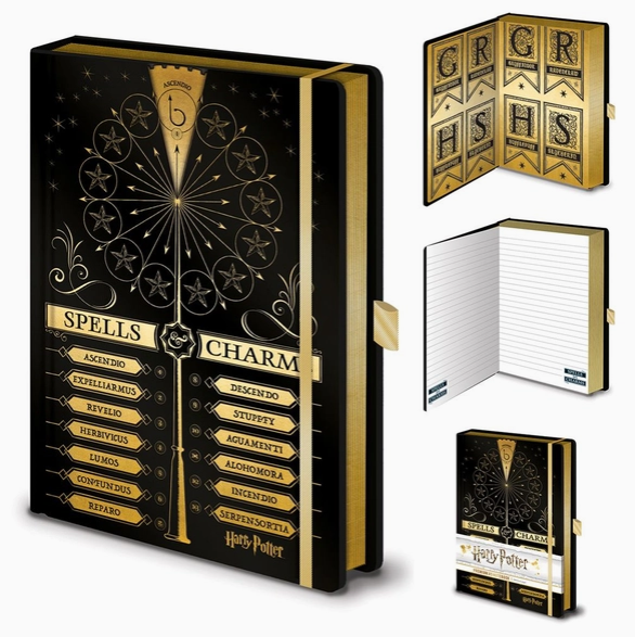 Immerse yourself in the enchanting world of Harry Potter™ with this A5 notebook, inspired by the most famous spells and enchantments. Its refined cover, adorned with magical patterns and golden details, evokes the mysterious atmosphere of the Hogwarts™ classrooms. Ideal for recording your thoughts, sketches, or your own incantations, this compact notebook slips easily into a bag or satchel. A stylish and practical accessory for all apprentice witches and wizards.