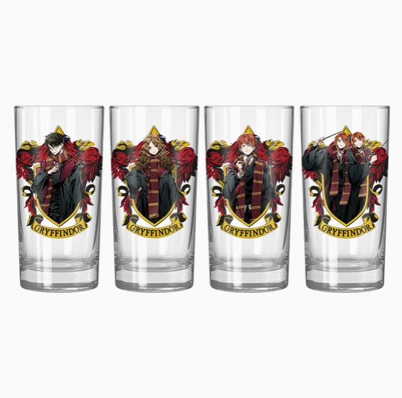 Add a touch of magic to your collection with this set of four 10oz tumbler glasses featuring the iconic crests of Harry Potter™ characters. Each glass boasts a distinctive design inspired by the Wizarding World, perfect for gatherings, themed parties, or simply enjoying your favorite beverage in style.