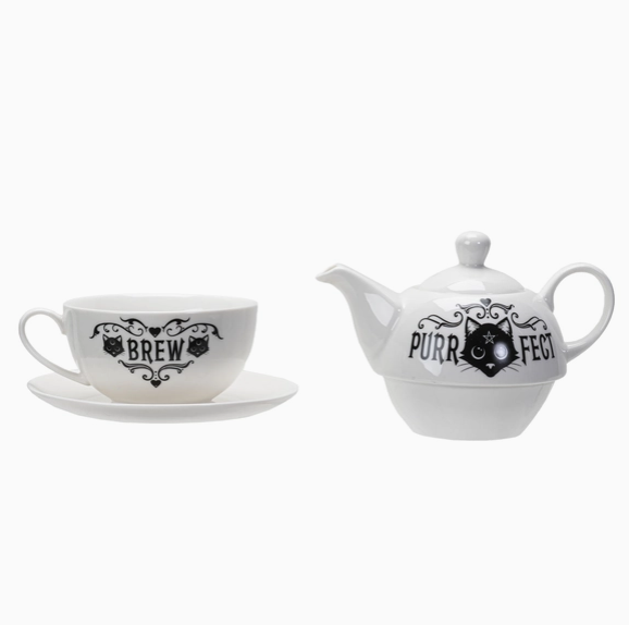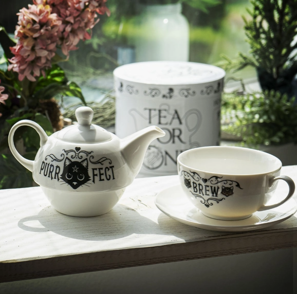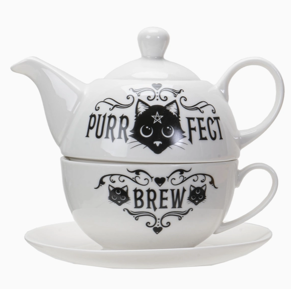 Ajoutez une touche mystérieuse et élégante à votre rituel de thé avec cet ensemble théière – Chat Noir signé Alchemy Gothic™. Cet ensemble empilable comprend une théière et une tasse assortie, ornées d’un magnifique chat noir aux accents gothiques emblématiques de la marque. Fabriqué en céramique de qualité, il est parfait pour savourer une infusion en solo tout en apportant une atmosphère envoûtante à votre décor. Un choix idéal pour les amateurs d’esthétique sombre, de chats et de l’univers Alchemy Gothic™.