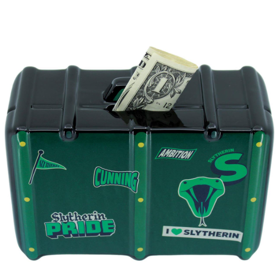 Affichez votre fierté de maison avec la tirelire en céramique Serpentard™ en forme de valise. Ornée d’écussons et de motifs représentant l’ambition et la ruse caractéristiques de Serpentard™, cette tirelire est un incontournable pour tout sorcier ou sorcière de la maison verte et argentée. Grâce à son bouchon en caoutchouc, vos pièces restent bien protégées.