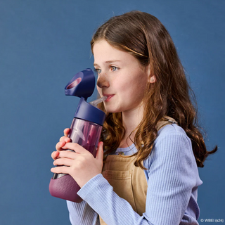 Sa forme triangulaire unique est spécialement conçue pour les petites mains, facilitant la prise en main. Le bouton poussoir ouvre le couvercle en un geste, gardant l’embout de la paille propre lorsqu’il est fermé. Son embout anti-fuite avec valve à mordre évite les renversements accidentels. La poignée robuste permet aux enfants de la transporter facilement et de la sortir de leur sac sans difficulté.