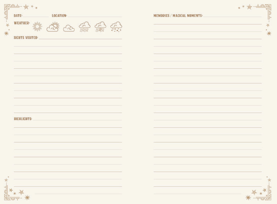 Une feuille d'autocollants pour décorer ton journal, ta valise ou tes cartes, et ajouter une touche de magie personnelle à chaque objet.