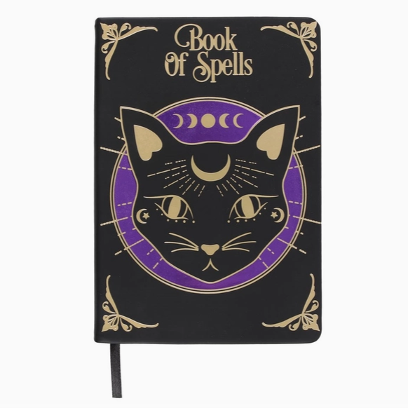 Consignez vos incantations, recettes de potions et pensées magiques dans ce grimoire envoûtant, inspiré de l’univers mystérieux des sorcières et de leurs familiers félins. Son design orné d’un chat noir, de symboles ésotériques et de détails dorés lui confère un charme ancien et un brin ensorcelé.